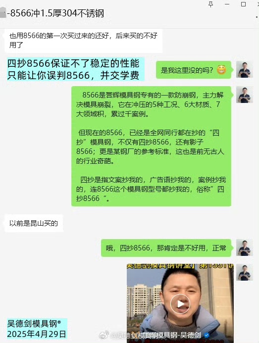 冲头崩裂用8566模具钢,新旧社会两重天,但不包含四抄8566或影子8566。有些人的踩坑,是值得同情的,因为不知道8566市场这么乱,但有些人的踩坑,是自找的。