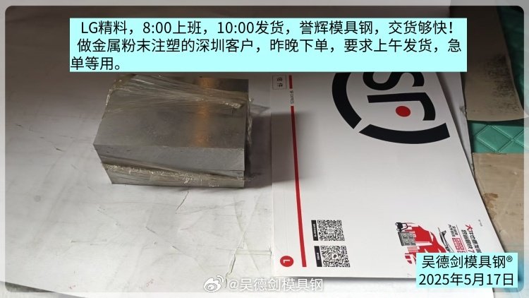 LG精料,8:00上班,10:00发货,誉辉模具钢,交货够快!