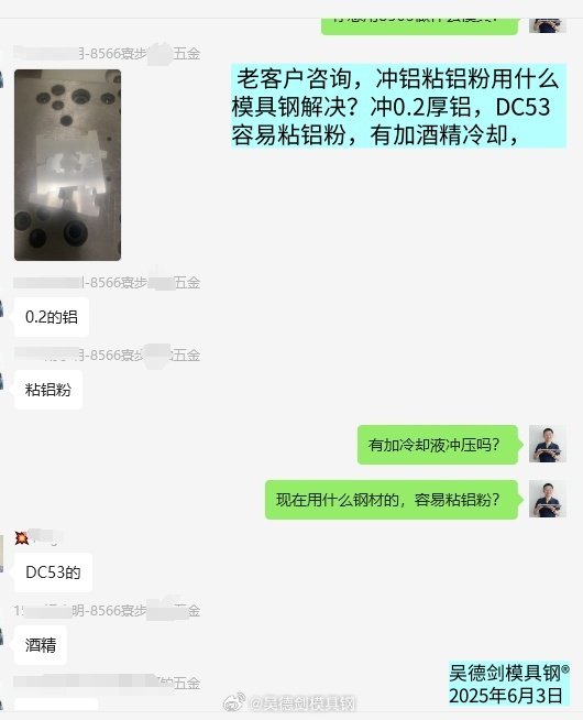 今天收到3个关于冲铝粘屑的咨询,看来冲铝粘屑是个普遍存在的痛点,值得大家关注,选择模具钢,要优先考虑不粘铝屑的性能。