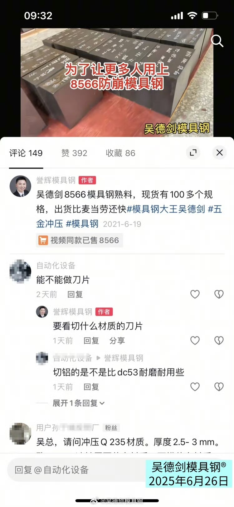 有网友提问,用8566防崩钢做刀片,切铝的是不是比DC53耐磨耐用些?