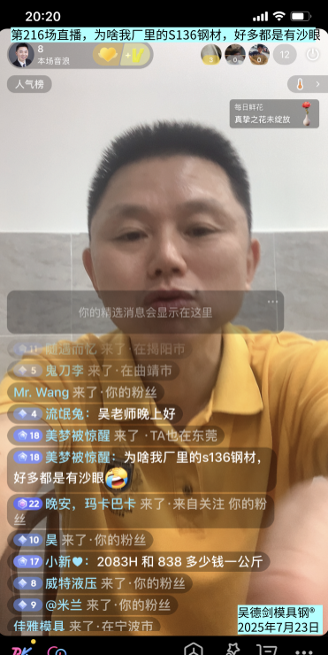 直播网友问,为啥我厂里的S136钢材,好多都是有沙眼?