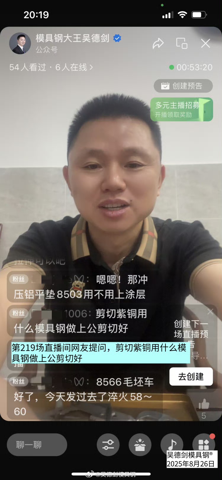 第219场直播间网友提问,剪切紫铜用什么模具钢做上公剪切好?