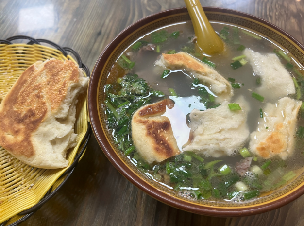 这烧饼干嚼,很有劲道,但你把它掰碎了,泡在羊汤里面,让它吸满羊汤后,别有一番风味。
