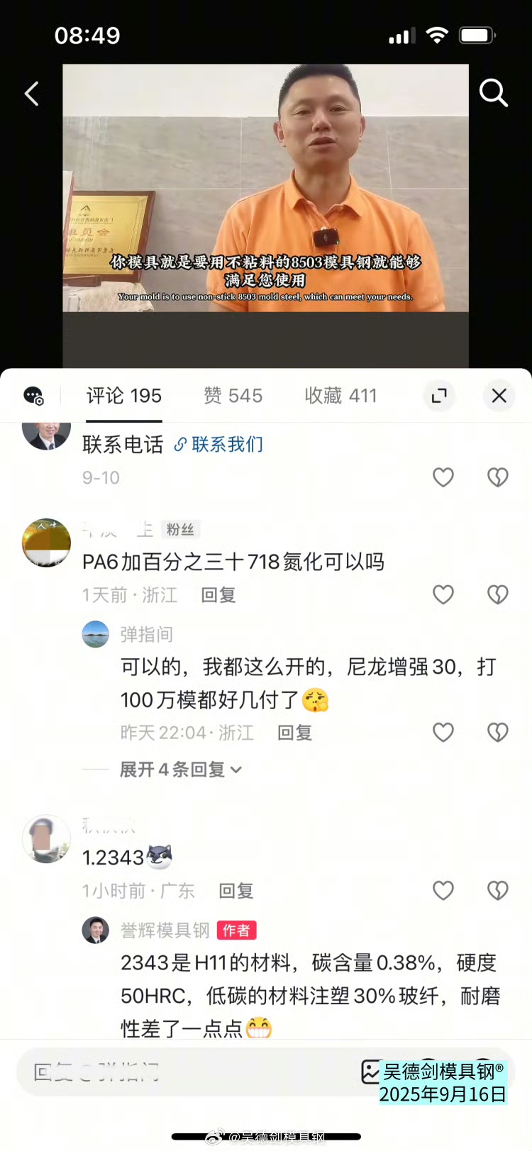 用718模具钢+氮化,来注塑PA66+30%玻纤的模具用料,我是持反对意见的,因为氮化要在500-520℃的高温下呆20个小时。模具长时间在高温下,模具基材硬度会下降,模具会发生变形,对精密模具而言,这是不允许的。