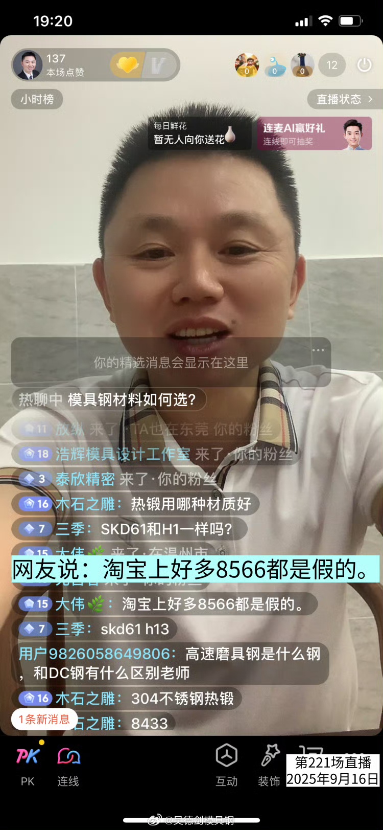 直播间网友留言说,淘宝上好多8566都是假的。