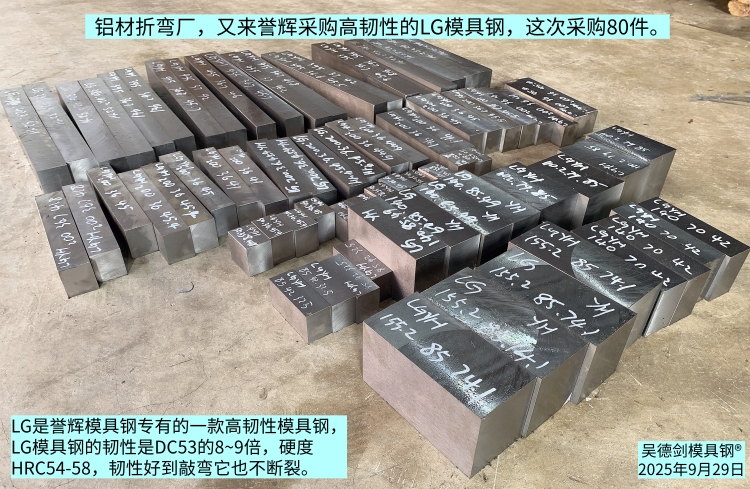 铝材折弯厂,又来誉辉采购高韧性的LG模具钢,这次采购80件。