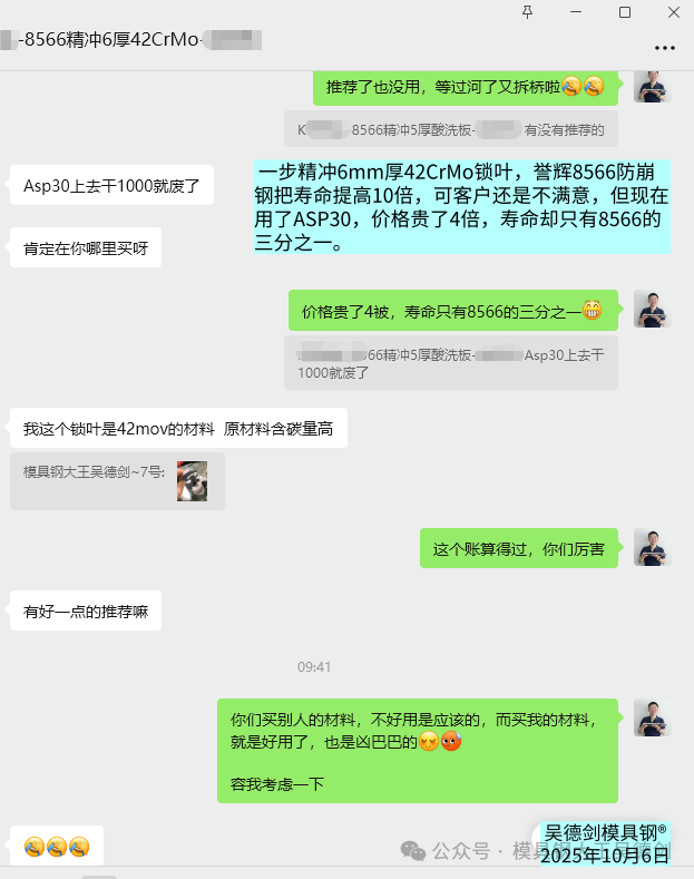 客户对模具钢是否好用的判断,采用的双标准。现实版的特离普,被我遇见了。