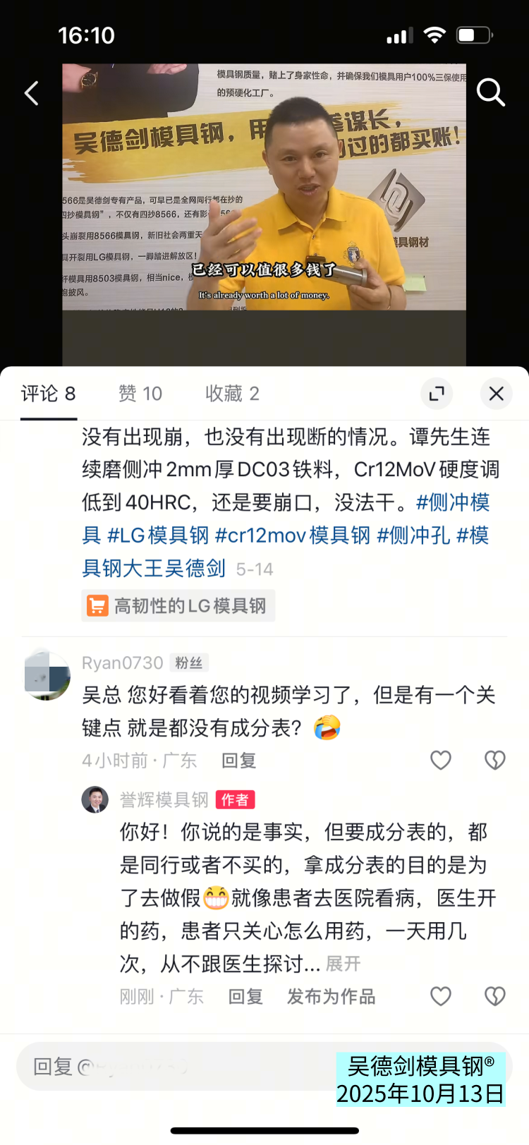 所以,我的总结是,要成分表的,都是同行或者不买的,很多人拿成分表的目的是为了去做假,或者去找替代钢种。