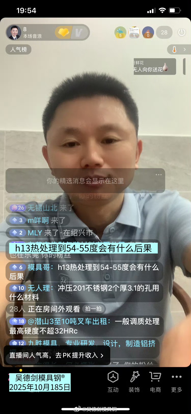 直播间网友提问:H13热处理到54-55度会有什么后果?