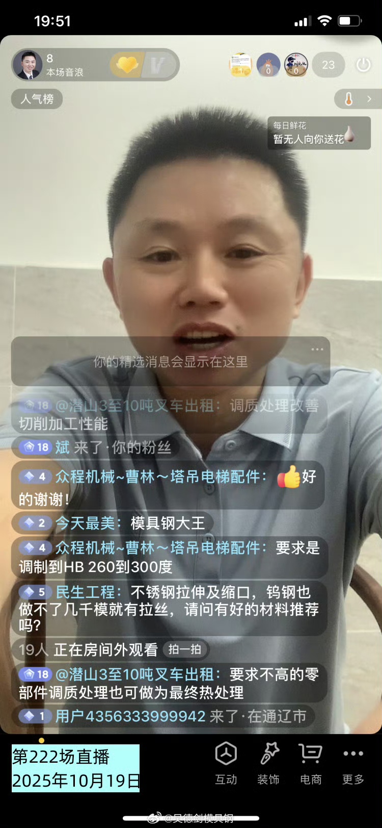 第222场直播间有网友提问说,不锈钢拉伸及缩口,钨钢也做不了几千模就有拉丝,请问有好的材料推荐吗?