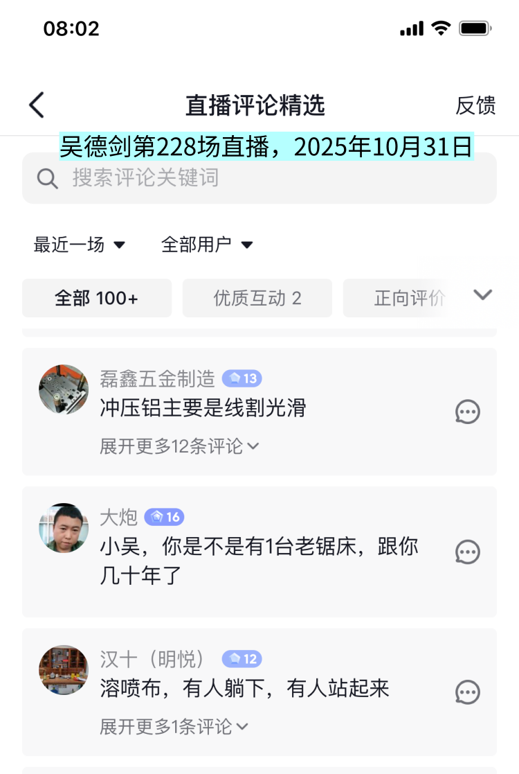 这场直播间,最让我感到的评论是:“小吴,你是不是有1台老锯床,跟你几十年了。”