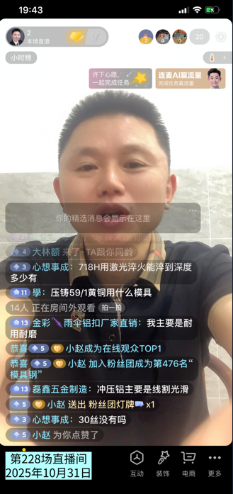 第228场直播间网友问,压铸59/1黄铜用什么模具钢?