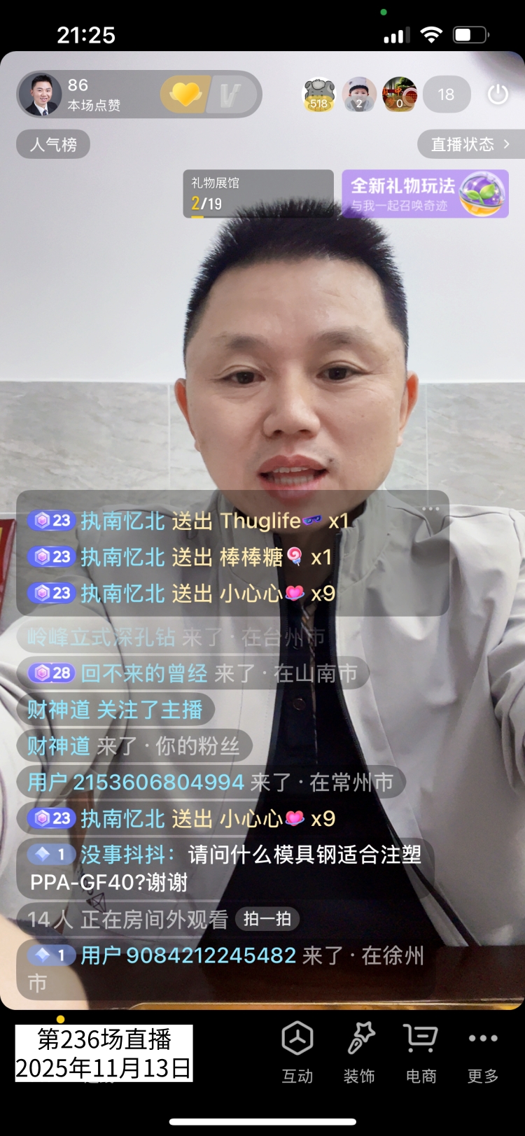 第236场直播间网友提问:请问什么模具钢适合注塑PPA-GF40%?谢谢!