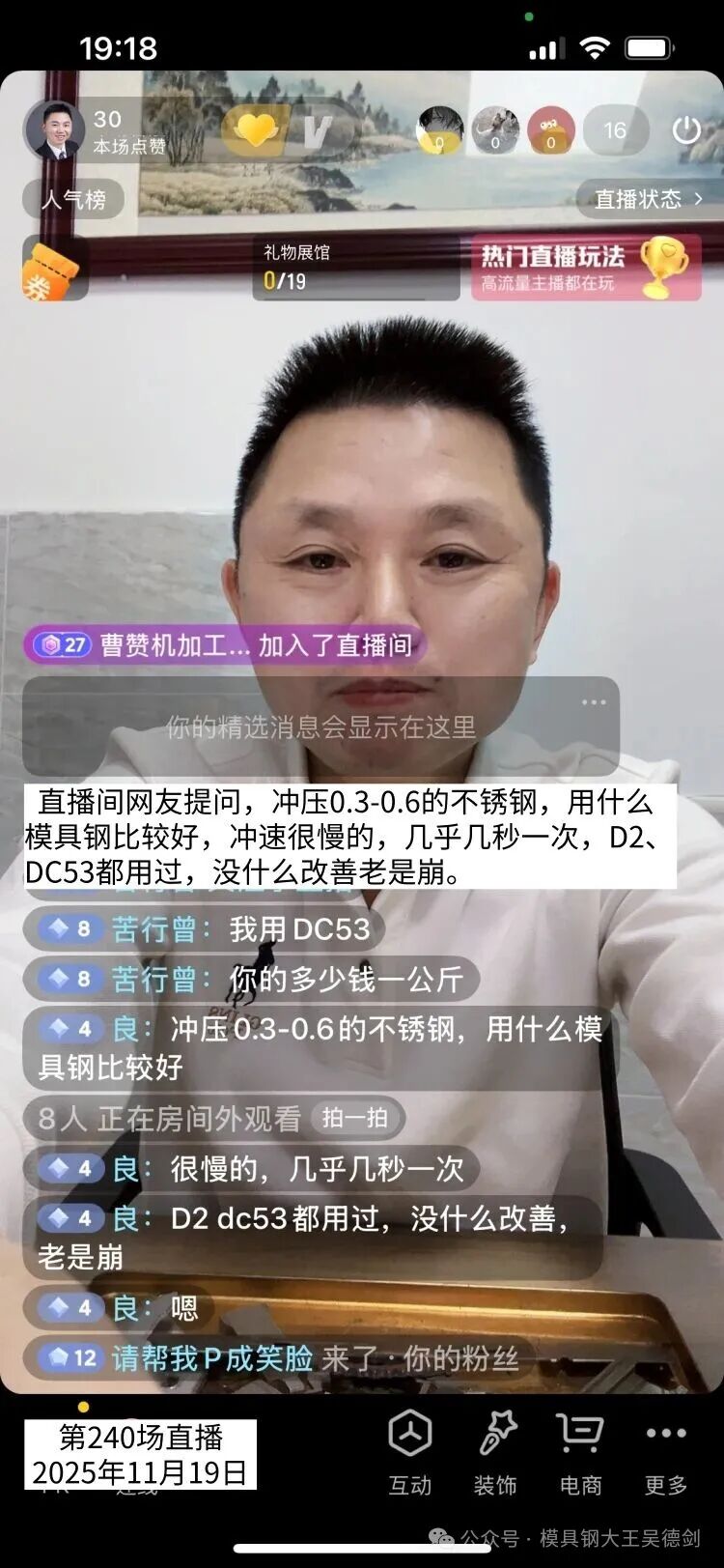 直播间能这么提问的人,是极少数,很多都是问大问题,比如冲压不锈钢用什么模具钢好?