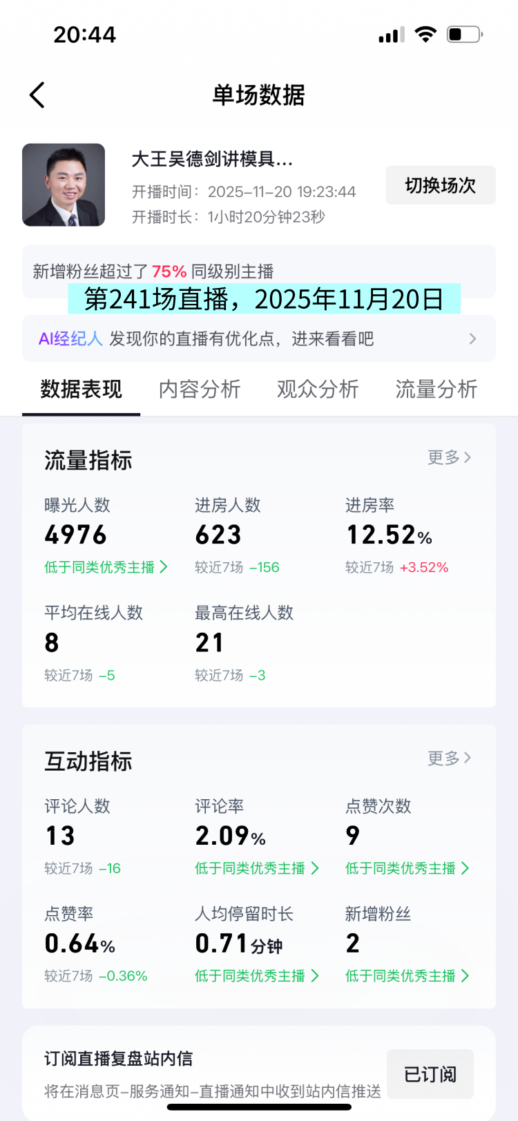 昨天晚上11月20日,我直播了1小时,这是我的第241场直播。