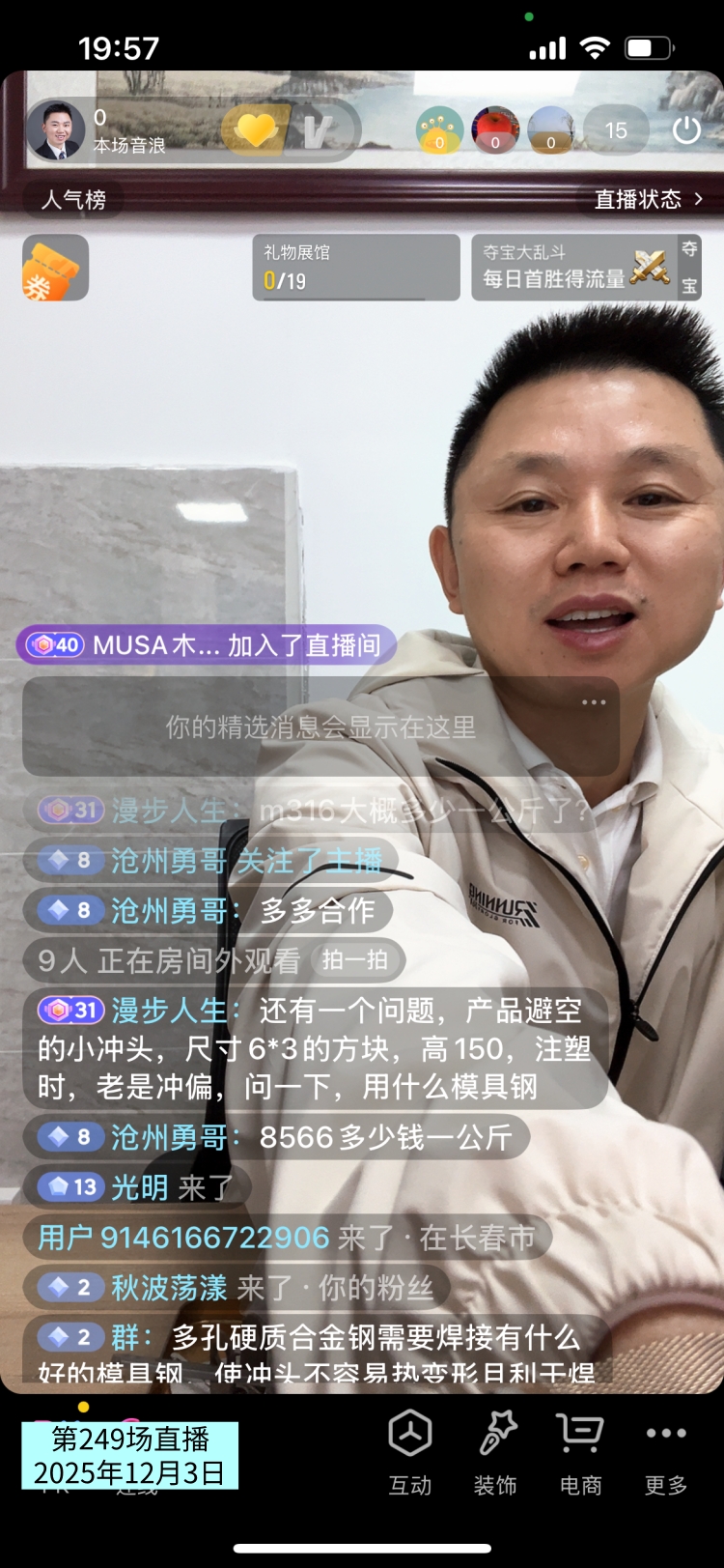 第249场直播有网友提问,有一个问题,产品避空的小冲头,尺寸6x3的方块,高150,注塑时,老是冲偏,问一下,用什么模具钢?