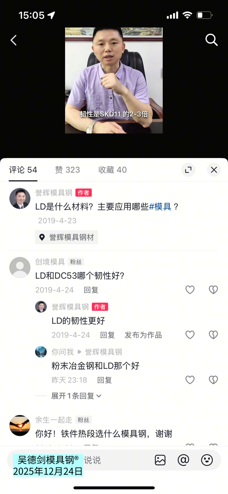 2019年4月23号拍的视频,现在还有人评论。