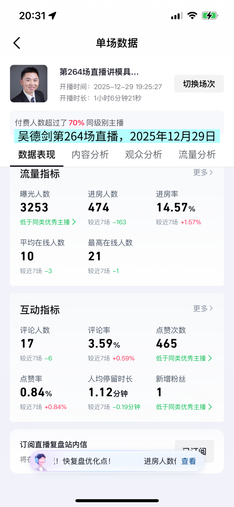 2025年12月29日的晚上,我做了1小时的直播,这是我的第264场直播。