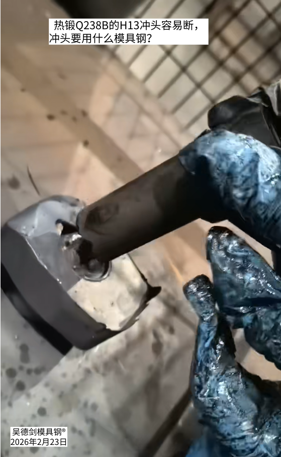 老家客户胡先生咨询问,热锻Q238B的H13冲头容易断,冲头要用什么模具钢?热锻1500件产品,冲头就被拔断了。