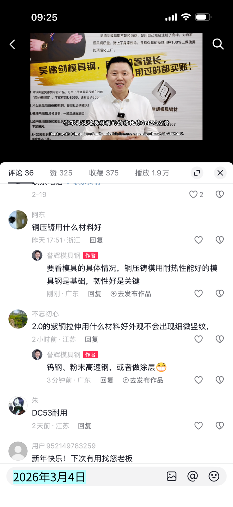 吴德剑已经解决了800多个客户的模具钢问题,并拍成了视频