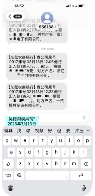 好事二,一汽模具制造有限公司的货款已经到位,他采购的是不粘料的8503模具钢