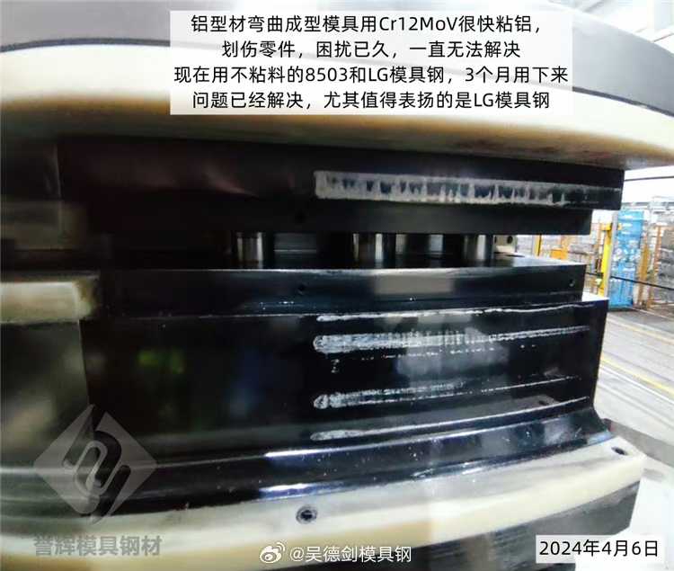 范小姐是技术工程师,她们公司是做铝型材弯曲设备的,配套会做很多模具,现在用Cr12MoV没感觉,模具在折弯或成型时,容易很快粘铝,把铝材给挂掉,模具刮铝和划伤问题一直都没解决。