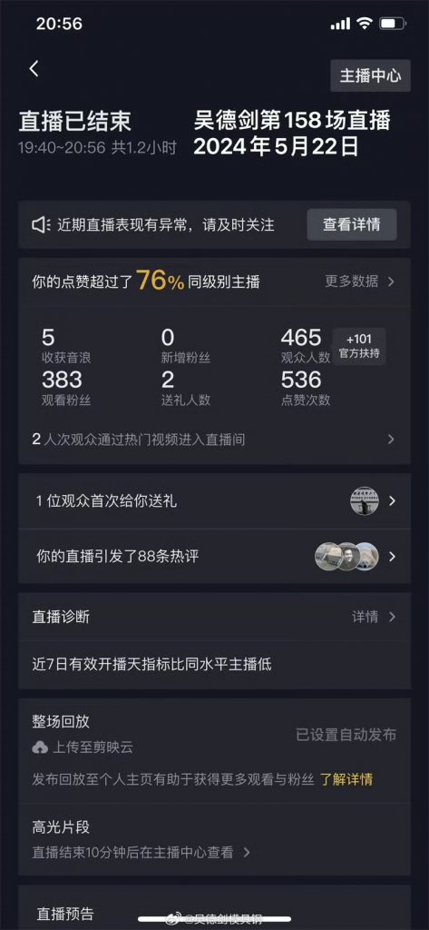 2024年5月22日,我做了1.2小时的直播,这是我的第158场直播。