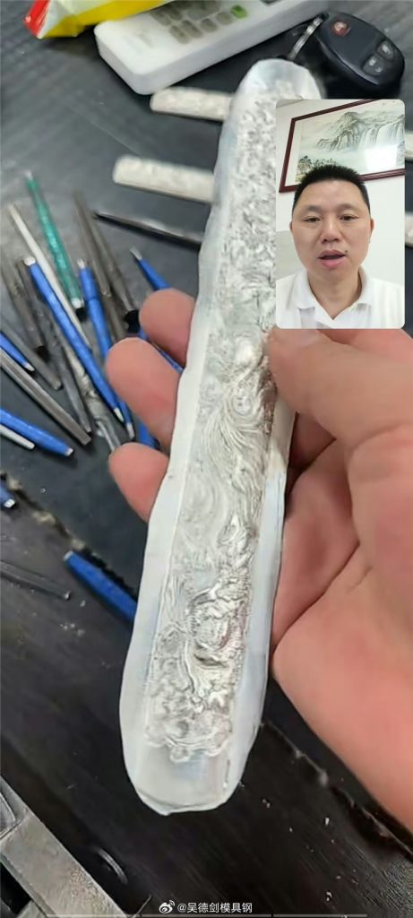 他的模具是把一根银棒压扁,并压成一定的纹路,然后人工修正花纹,现在压扁的模具,没压几个就直接开裂了,是一劈两半式的开裂。