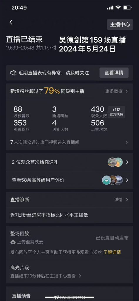 2024年5月24日,我做了1小时的直播,这是我的第159场直播。