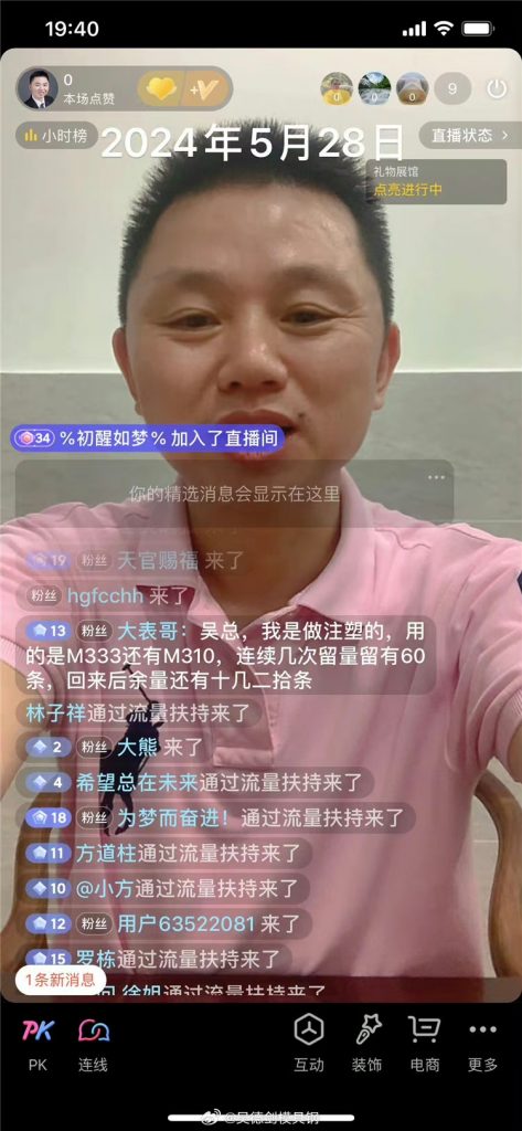 直播间有网友咨询说:我是做注塑的,用的是M333还有M310,连续几次余量留有60条,回来后余量还有十几二拾条。