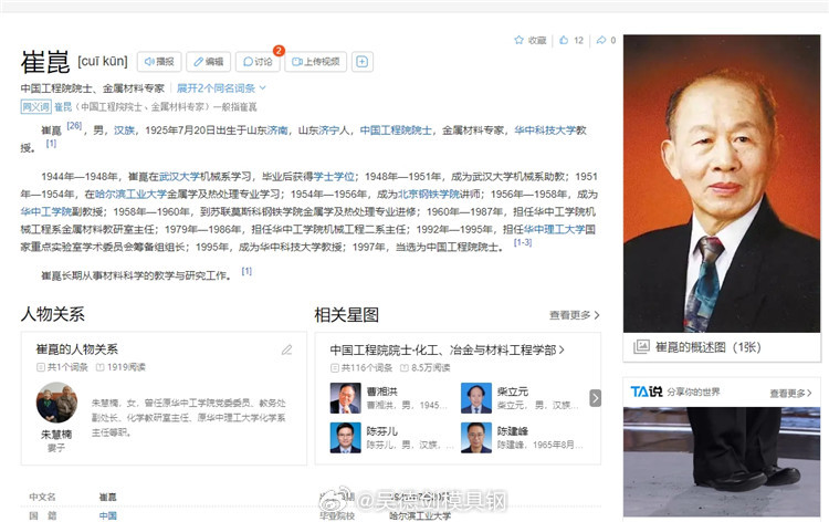 今早查了一下崔昆院士和徐祖耀院士的资料,有点激动。