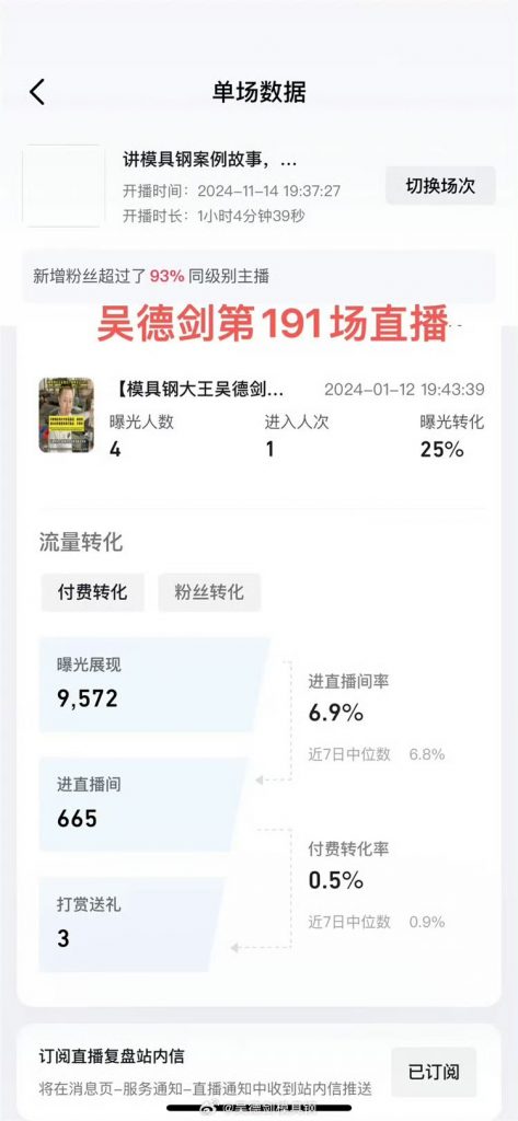 不过,这也挺好,一场直播,有600多个男人,看一个男人,巴拉巴拉讲模具钢。如果你晚上闲着无事,可以来我直播间,听我巴拉巴拉讲模具钢,不过最好带点情绪来,带着提问来