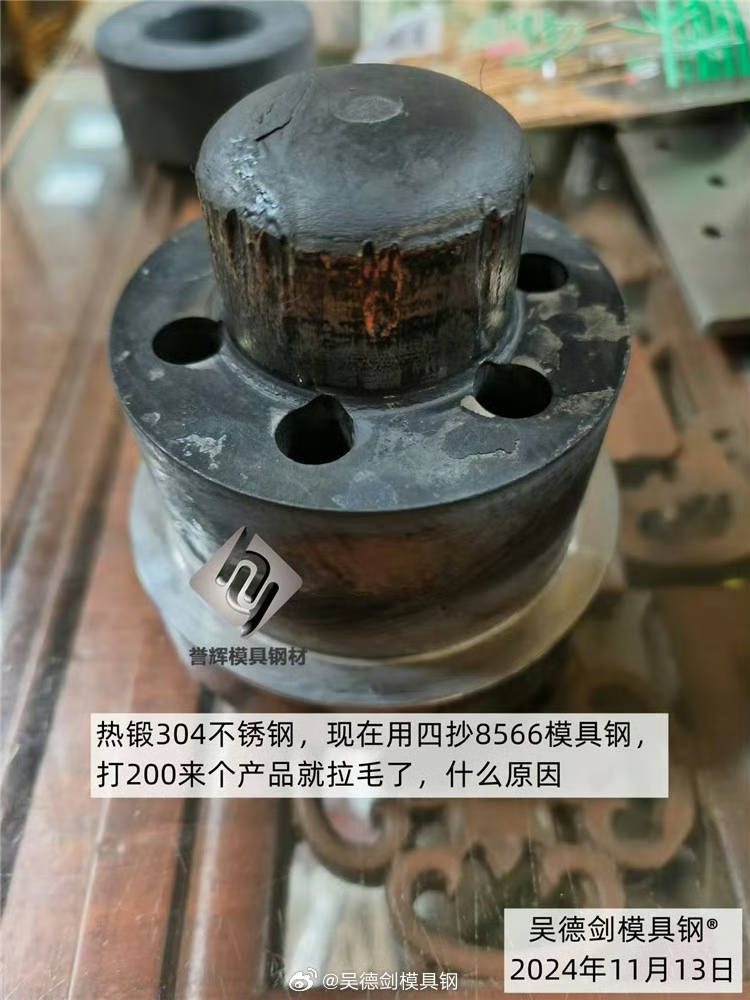 热锻不锈钢,是个极其残酷的工况,性能差的模具钢,立马会现原形。