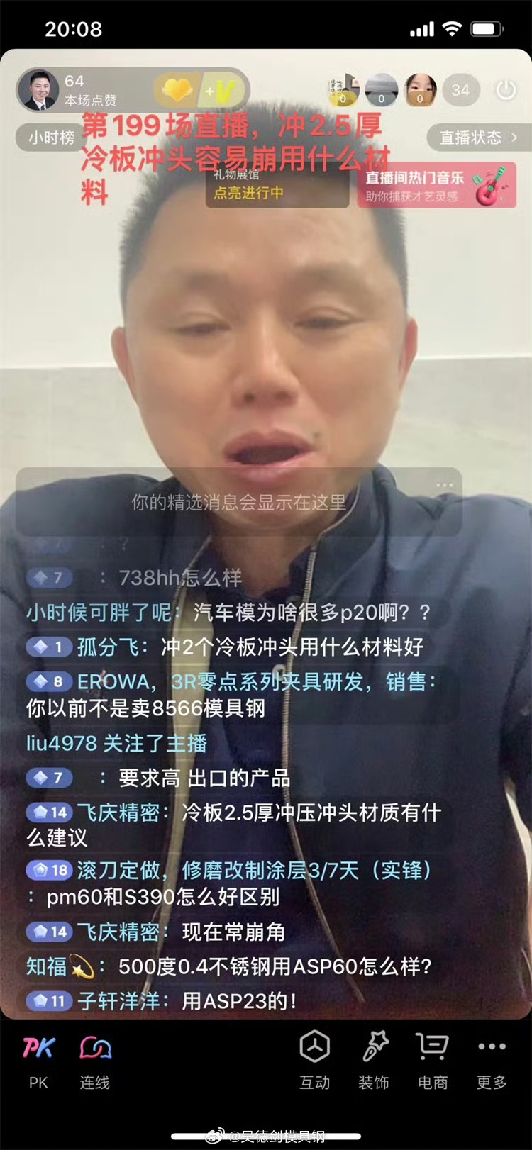 直播间收到网友提问,冷板2.5厚冲压冲头材质有什么建议,现在常崩角。