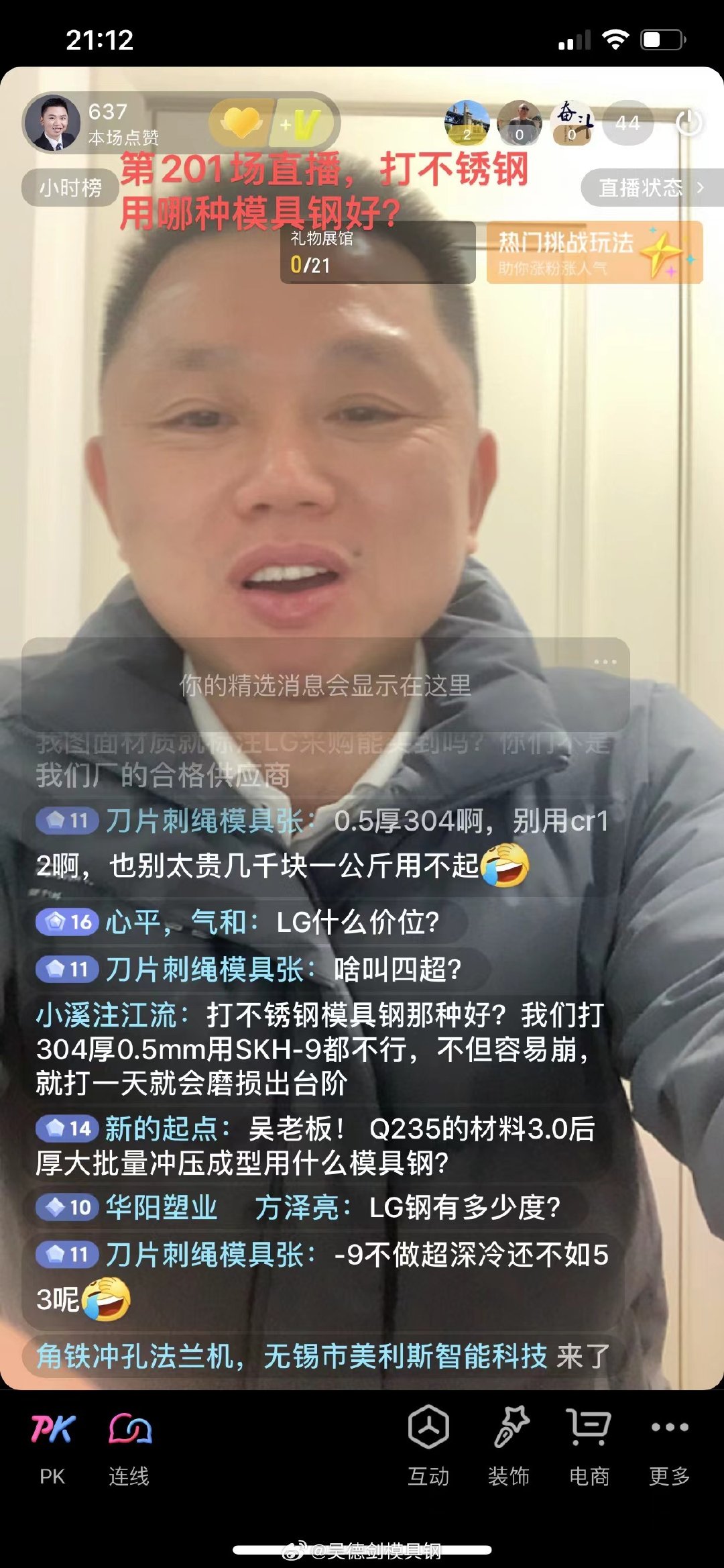 昨晚直播间有网友提问:打不锈钢模具钢那种好?我们打304厚0.5mm用SKH-9都不行,不但容易崩,就打一天就会磨损出台阶。