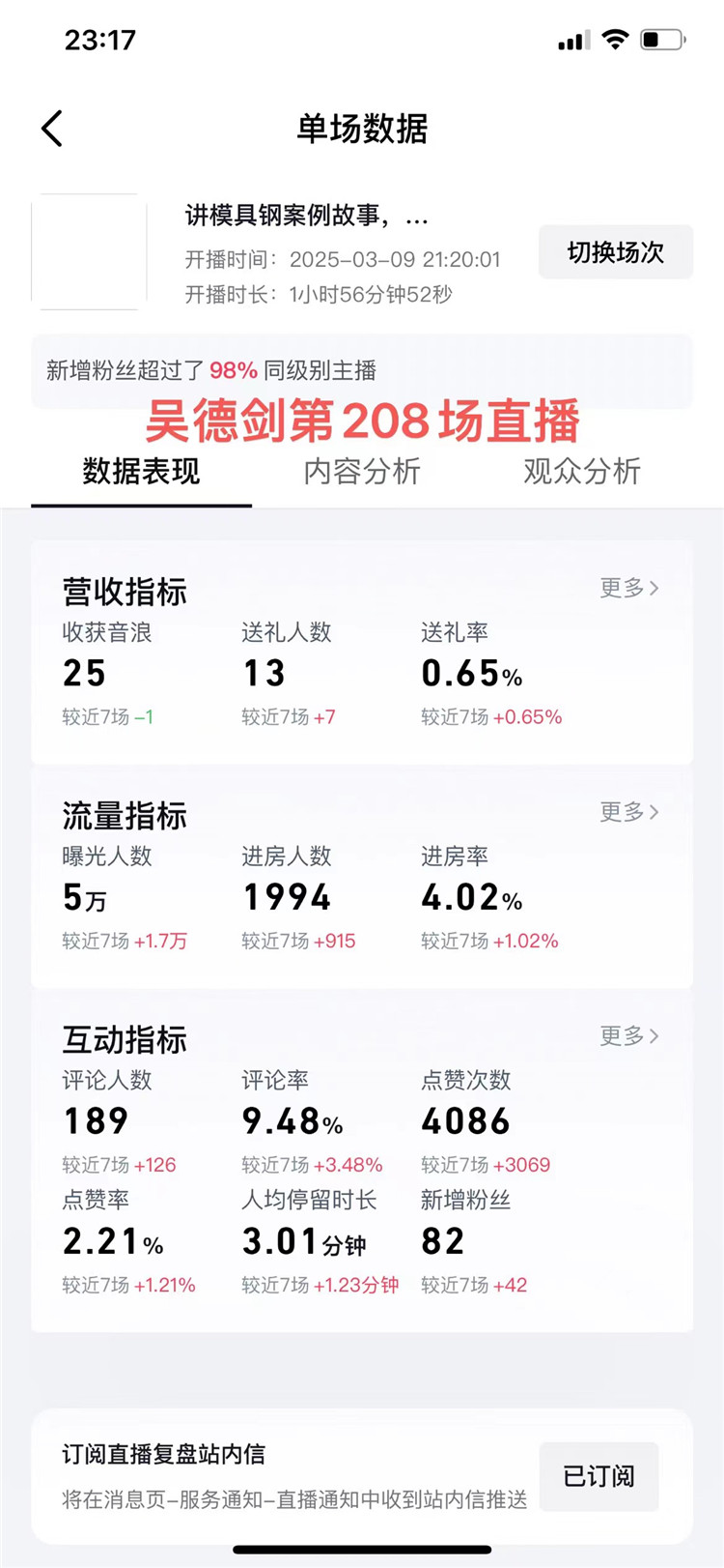 昨天周末,时间宽裕,我做了一场直播,这是我的第208场直播,直播时长2小时,长时间直播,确实有点累。