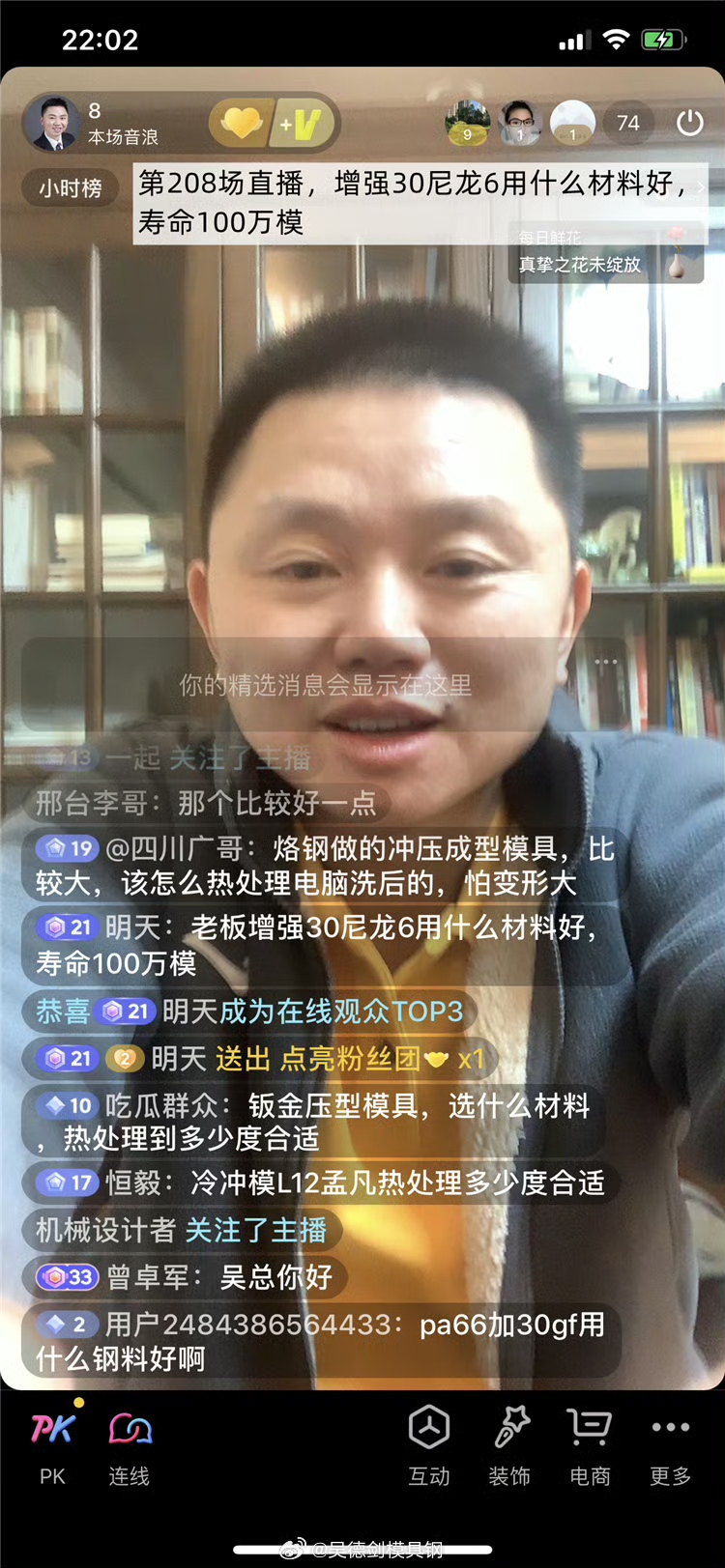 所以,网友明天提问:增强30尼龙6用什么材料好,寿命100万模。我是推荐不粘料的8503模具钢的,无论是从8503本身的性能,还是过往的成功案例的,都是有确切答案的选材。
