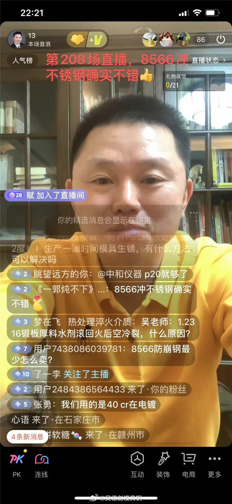网友一郭炖不下在直播间评论说:8566冲不锈钢确实不错。