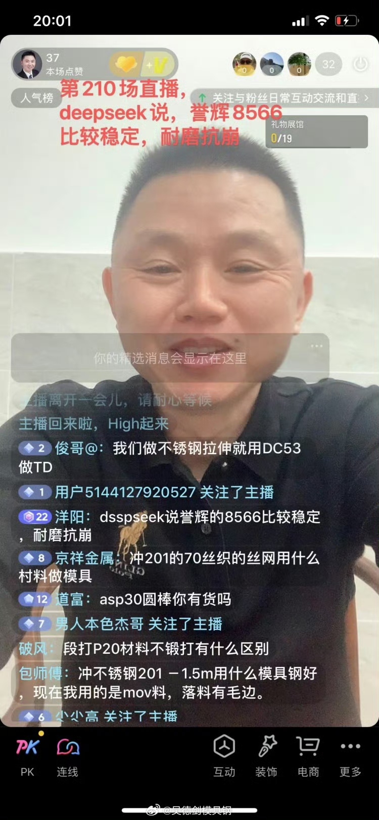 直播间洋阳告诉我说:dsspseek说,誉辉的8566比较稳定,耐磨抗崩