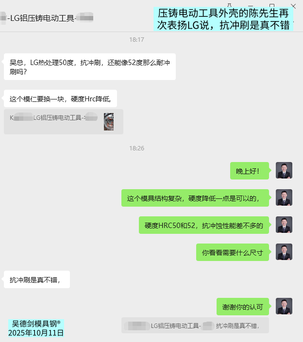 3-4倍的寿命增加,换谁都高兴,间隔几个月,又来表扬LG模具钢,可见对LG的满意呀。