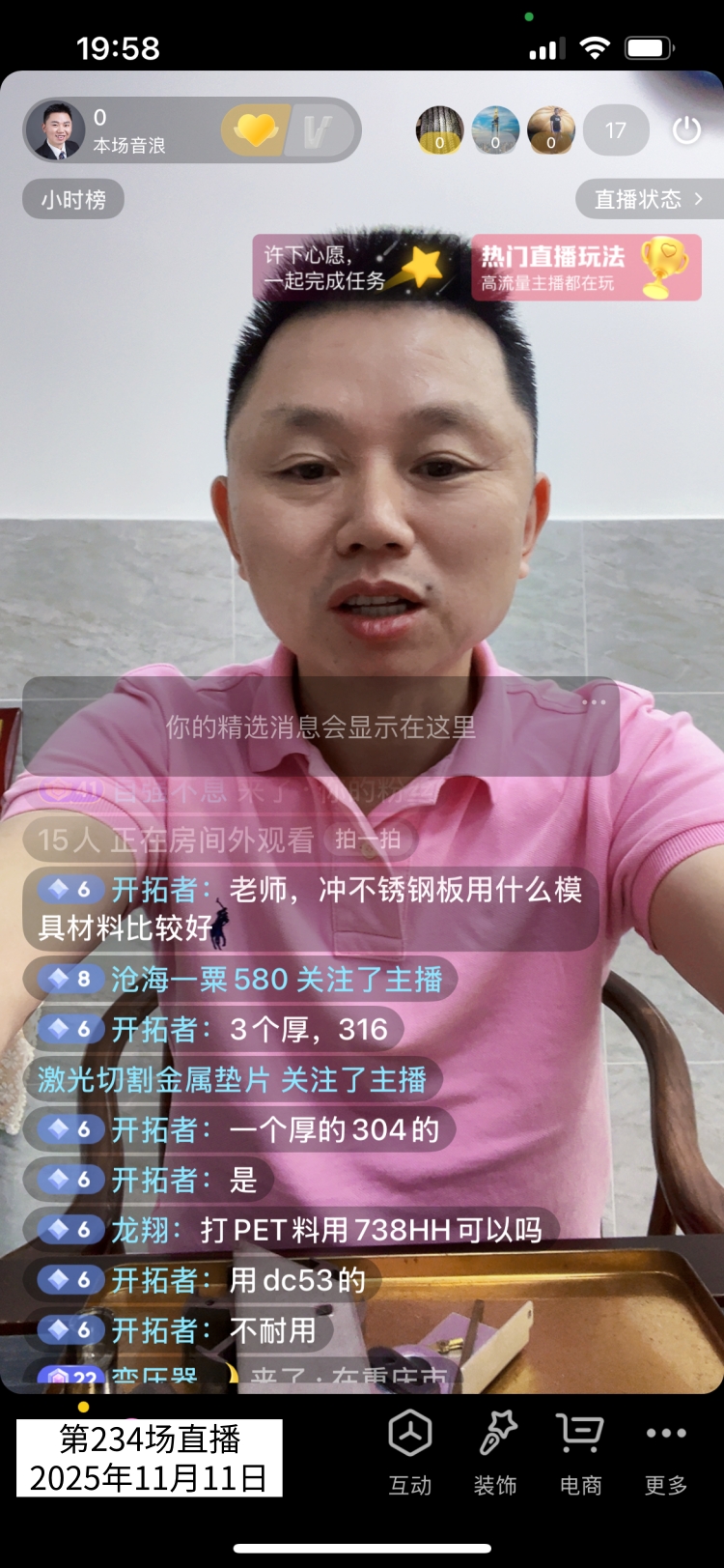 有客户在抖音后台留言说,冲压3mm厚304不锈钢,8566的模具寿命,是做了TD处理的DC53的4倍。