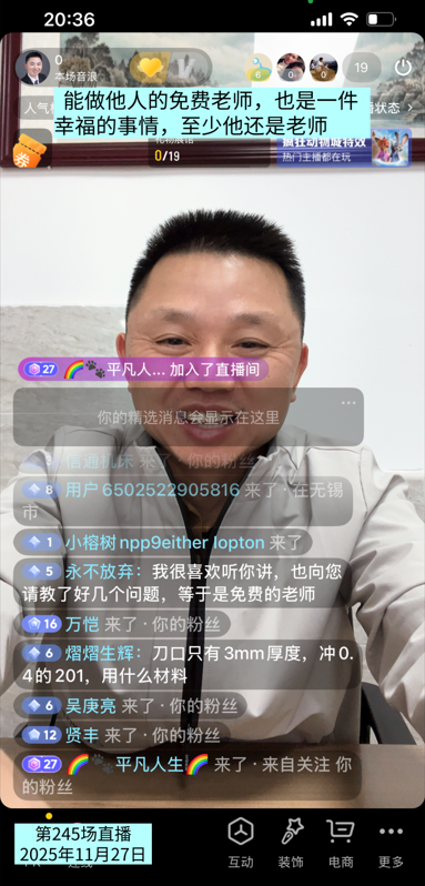 第245场直播间,网友评论说,我很喜欢听你讲,也向您请教了好几个问题,等于是免费的老师。