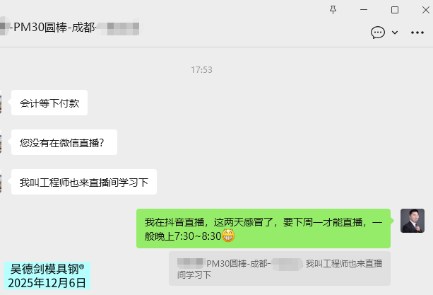 看来很多有人关心模具钢的,但不是我不播,是这两天感冒了,一把鼻涕,一把泪的,没法播。