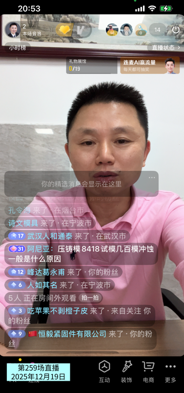 第259场直播间网友问:压铸模8418试模,几百模冲蚀,一般是什么原因?