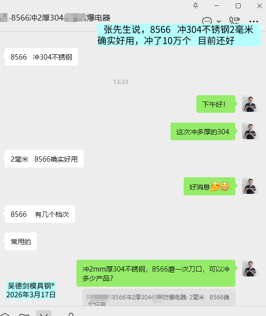 这是张先生刚刚来采购8566防崩钢时,对我说的话。