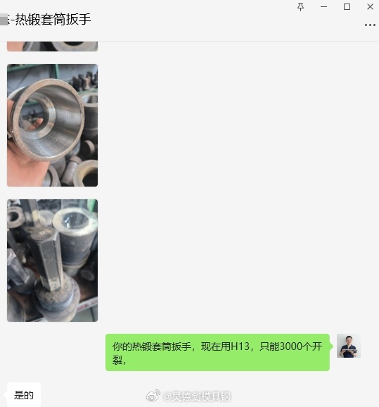 从这两个客户的咨询来看,耐热钢8433大有用武之地,他不仅能帮热锻模具提高模具寿命,还能减少修模换模时间,提高生产效率,并且降低模具成本,值得大力推广。