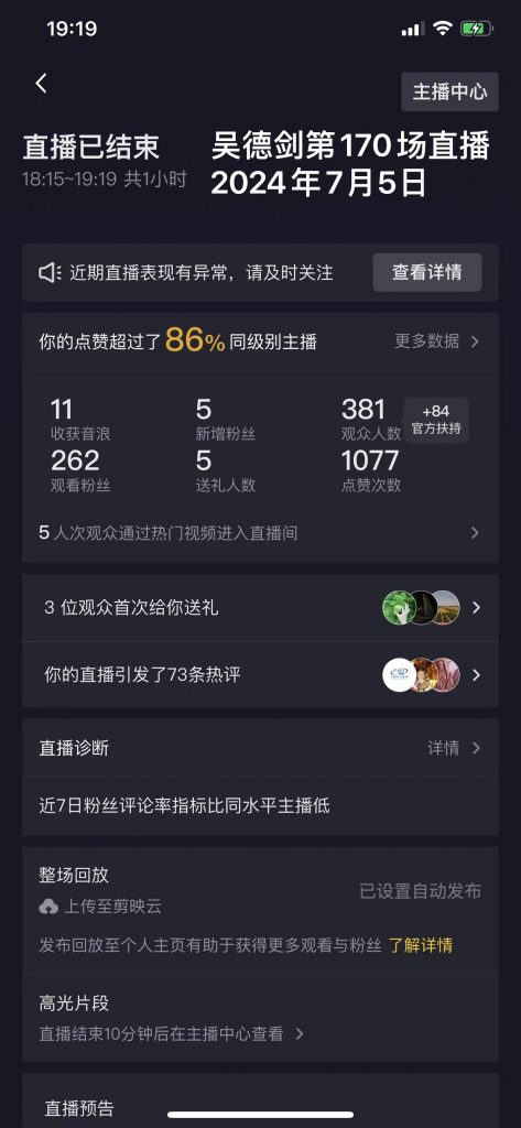 今晚又在抖音和微视号上同时直播,发现两个平台的观众数量都差不多。